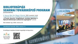 A Hamvas Béla Pest Megyei Könyvtár 2026 tavaszára ismét meghirdeti 60 órás, engedélyezett továbbképzési programját, „A humán könyvtári szolgáltatások minőségi fejlesztése a fejlesztő biblioterápia eszközeinek segítségével” címmel.