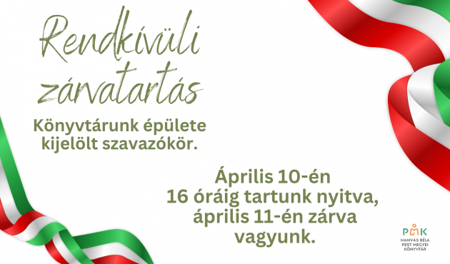Április 10-én 16 óráig tartunk nyitva, április 11-én zárva vagyunk.