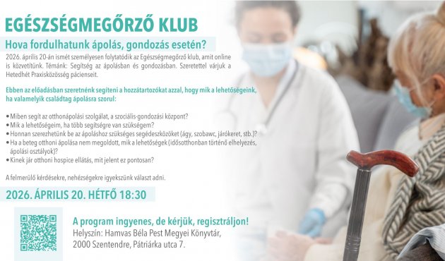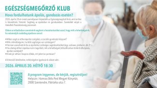 2026. április 20-án ismét személyesen folytatódik az Egészségmegőrző klub, amit online is közvetítünk.