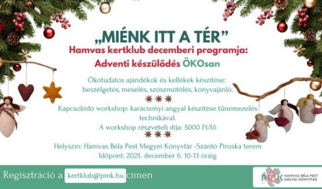 Szeretettel várjuk az érdeklődőket a Hamvas kertklub decemberi programjára.