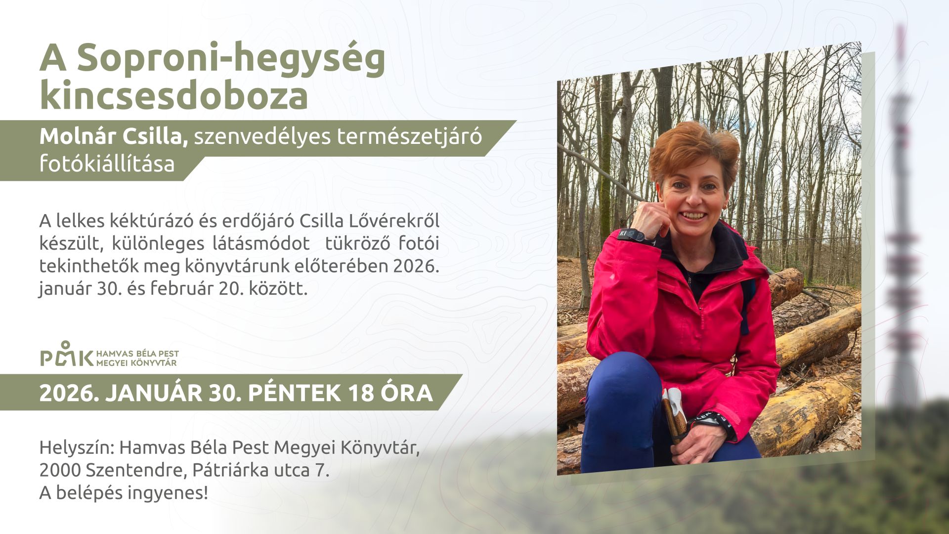A lelkes kéktúrázó és erdőjáró Csilla Lővérekről készült, különleges látásmódot tükröző fotói tekinthetők meg könyvtárunk előterében 2026. január 30. és február 20. között.