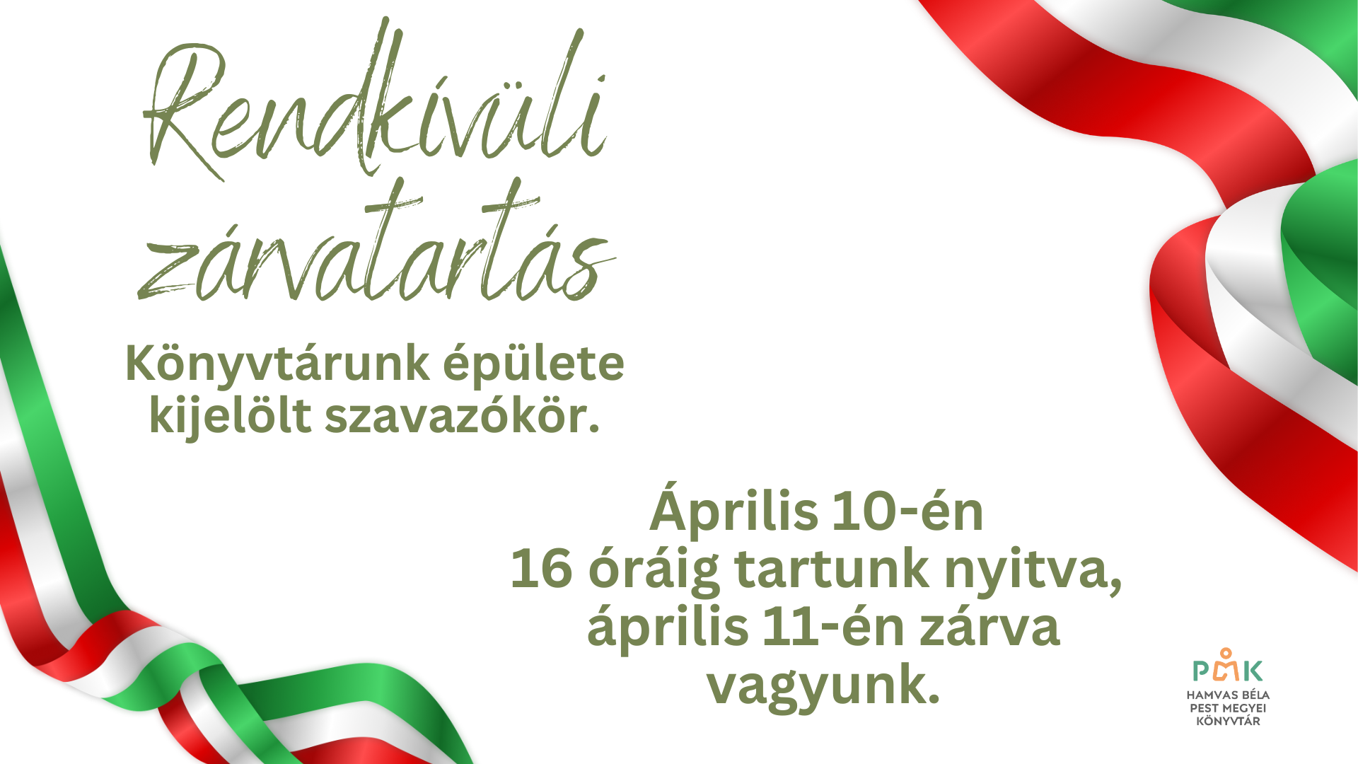Április 10-én 16 óráig tartunk nyitva, április 11-én zárva vagyunk.