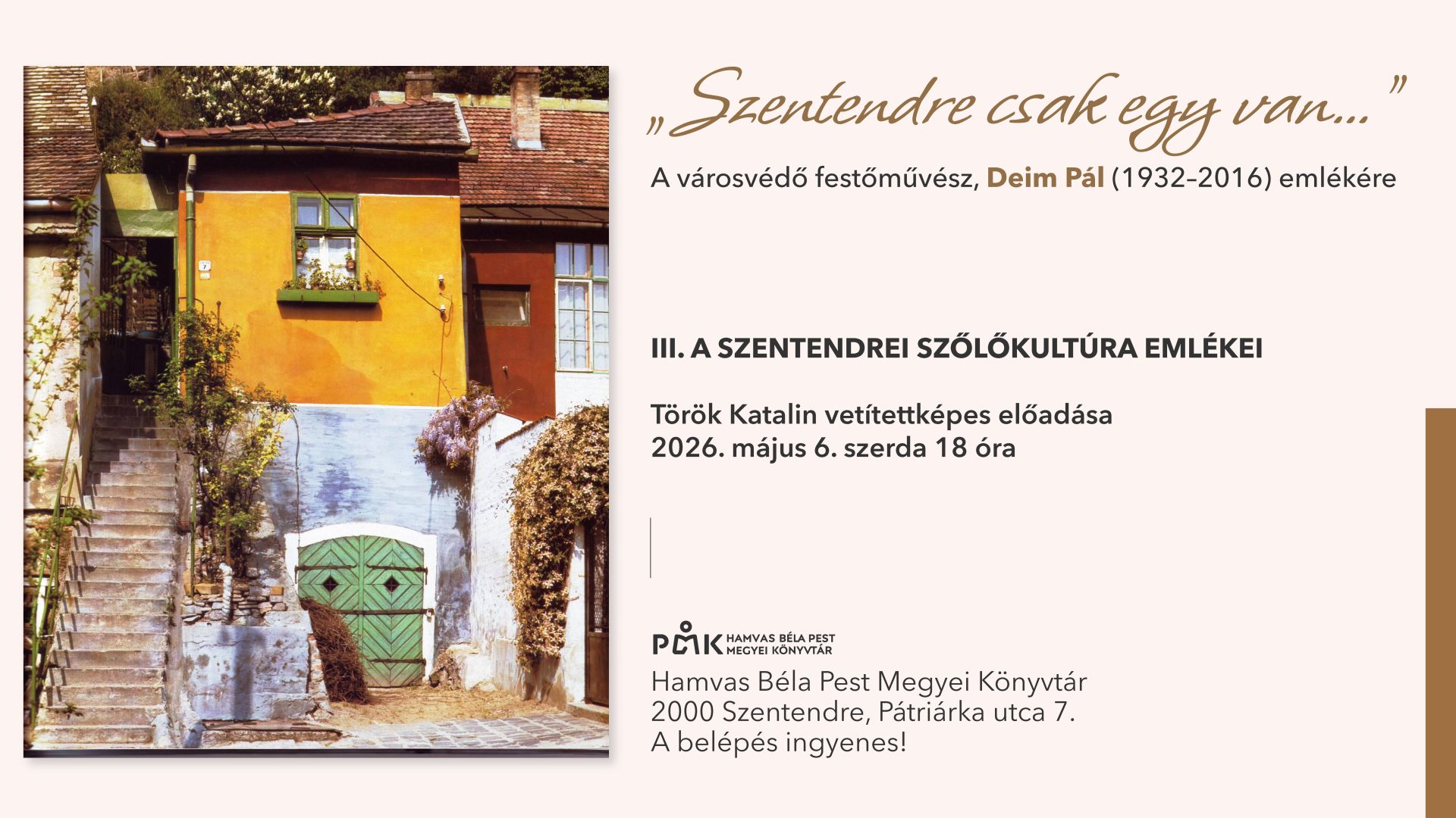 Időpont: 2026. május 6. szerda 18 óra Helyszín: Hamvas Béla Pest Megyei Könyvtár, 2000 Szentendre, Pátriárka utca 7. A belépés ingyenes! Az előadásról felvétel készül!