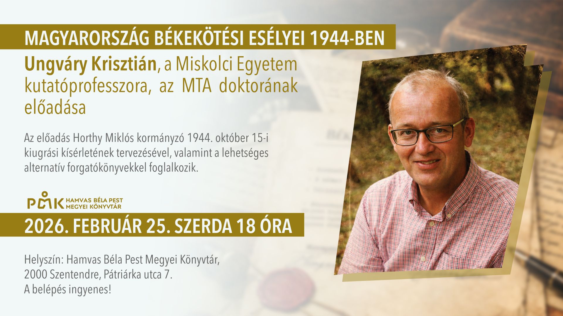 Helyszín: Hamvas Béla Pest Megyei Könyvtár, 2000 Szentendre, Pátriárka utca 7.